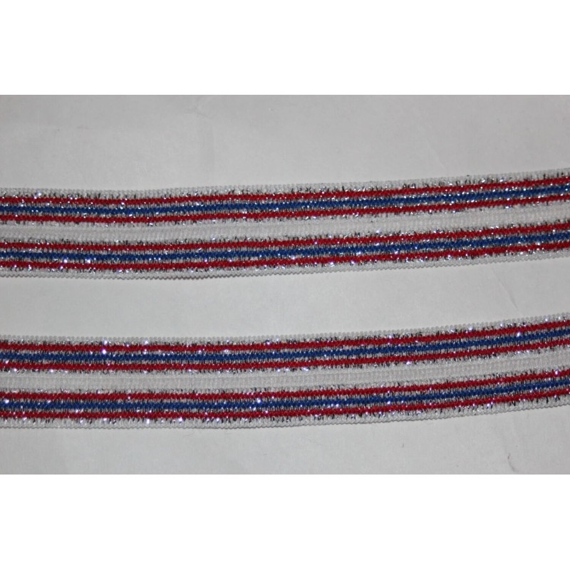Unbranded 10 yards red white blue metallic stripes 4th july stretch foldover elastic 5/8"
