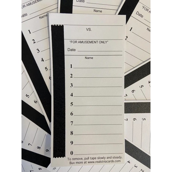 · ‘REAL’ STRIP CARDS, NOT MESSYSCRATCH OFF CARDS: These handmade, high quality strip cards are clean and easyto use. No messy scratch off or extra tools needed to play. High Quality,removable, black, opaque tape makes certain that there are no early peeks ormore common scratches that show partial with scratch off cards. The tape coversnumbers randomly placed on all lines from 0-9, plus includes a Bonus Number,used to add another opportunity to win. Packages are guaranteed against anyduplic