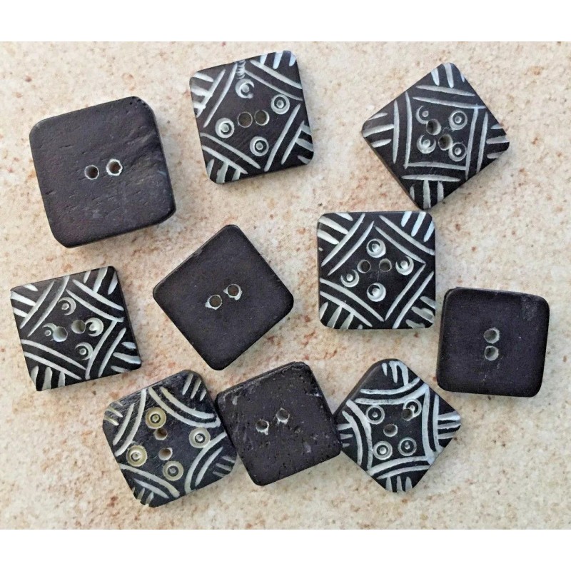 - The photos represent the selection of coconut shell buttons in this lot, from which 100 buttons will be randomly selected