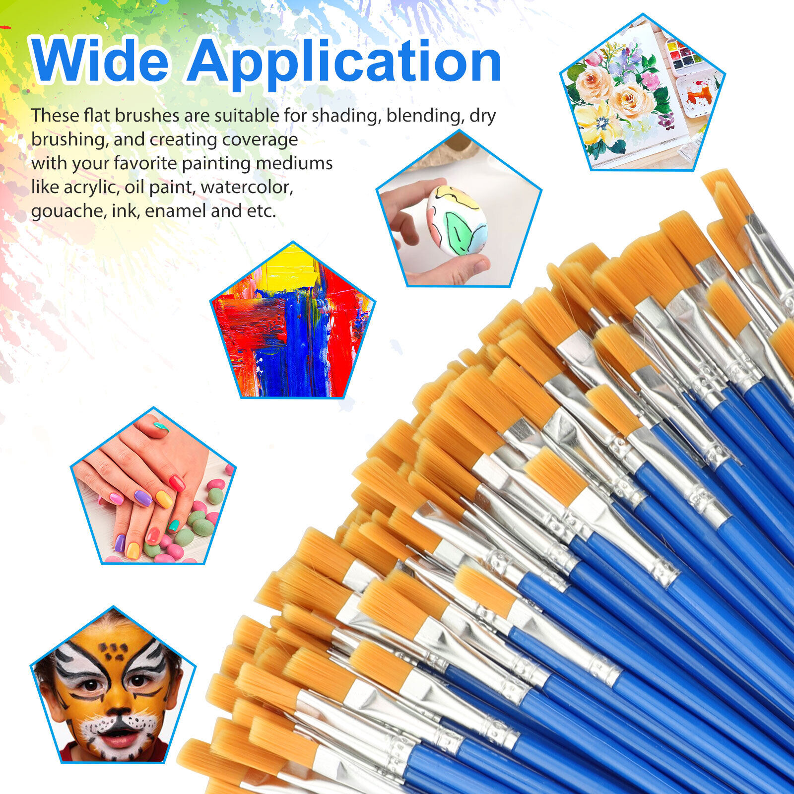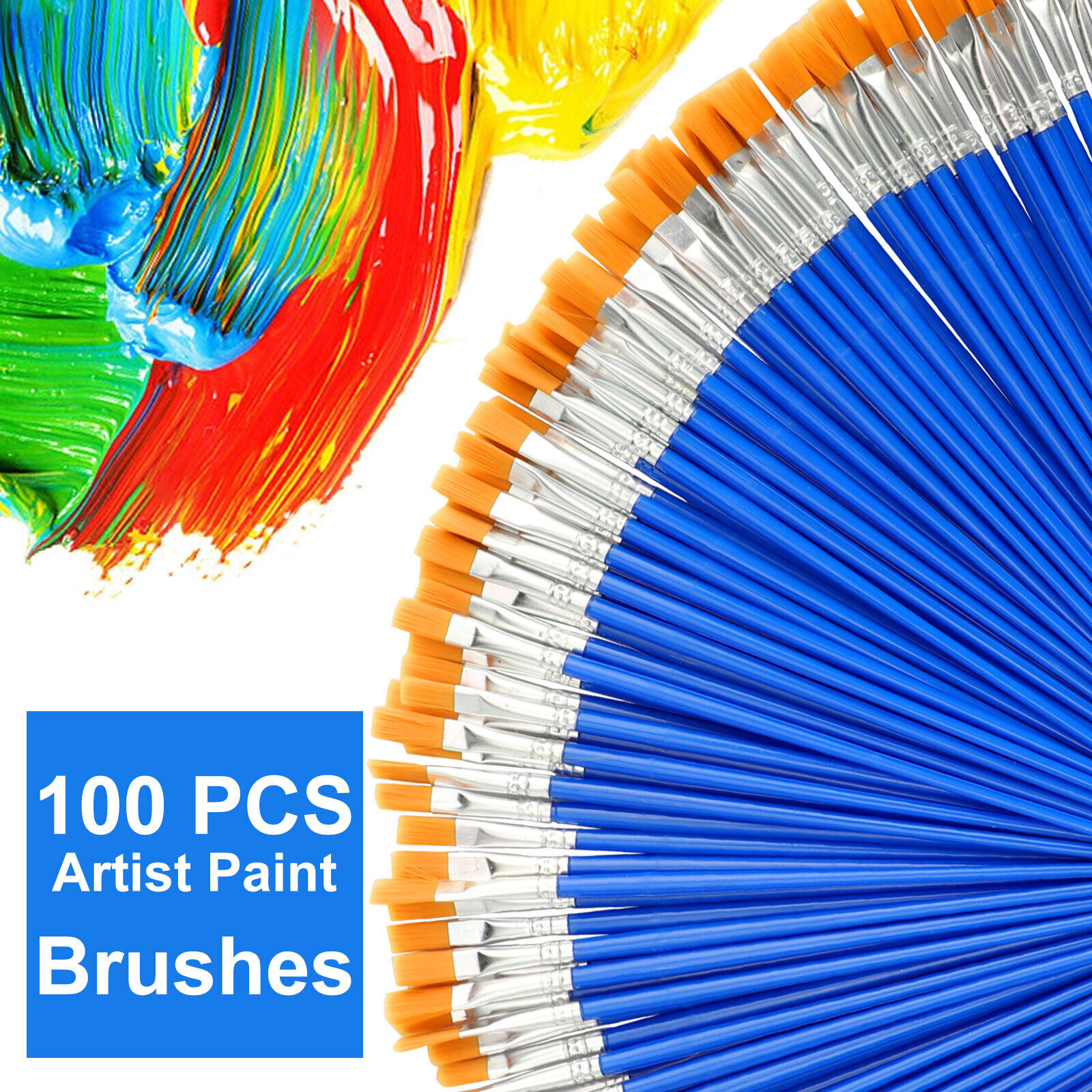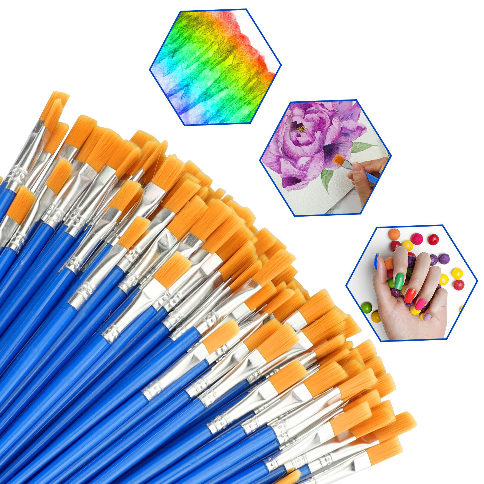 Unbranded 100PACK NEW Nylon Hair Oil Paint Brush Flat Brush Acrylic DIY Drawi...