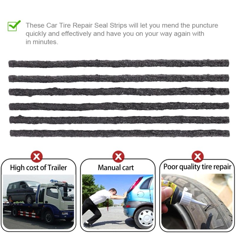 100pcs * Car Van Tyre Repair Tubeless Seal Strips (No tools included)