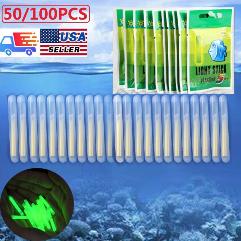 100× Fluorescent Fishing Float Glowing Sticks Night Clip On Dark Green Lights US