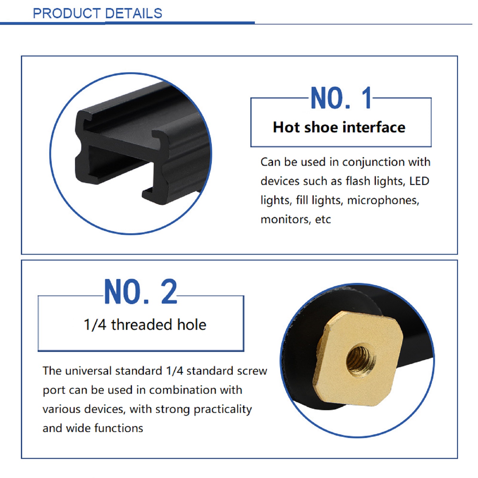 1. Universal: The extension rail is compatible with most cameras and microph models. it can be used for a variety of light sources, such as flashes, lights, etc.