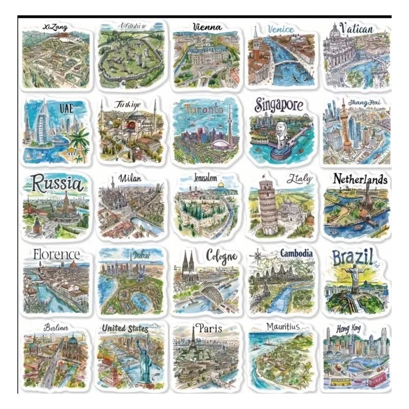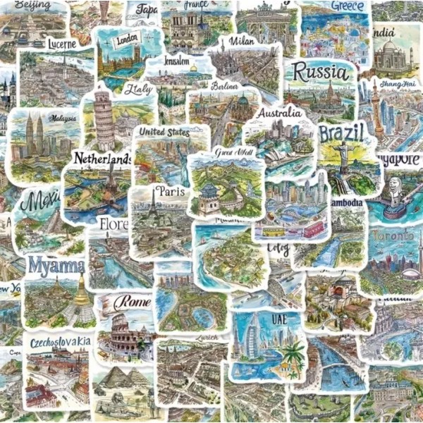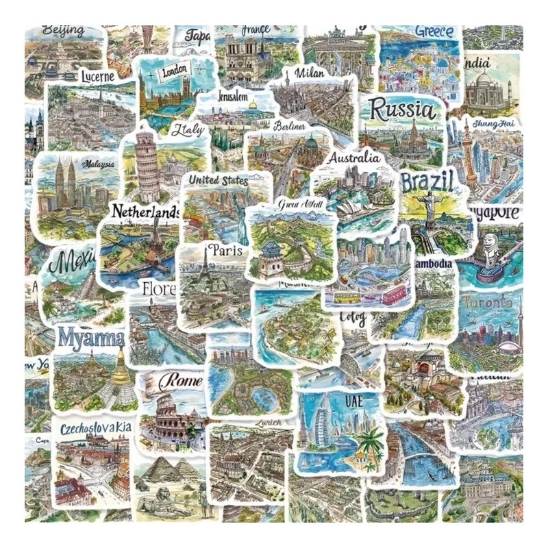 Unbranded 10pcs Hand Drawn Travel Map Stickers- Scrapbook, Journal, DIY Crafts & Cards
