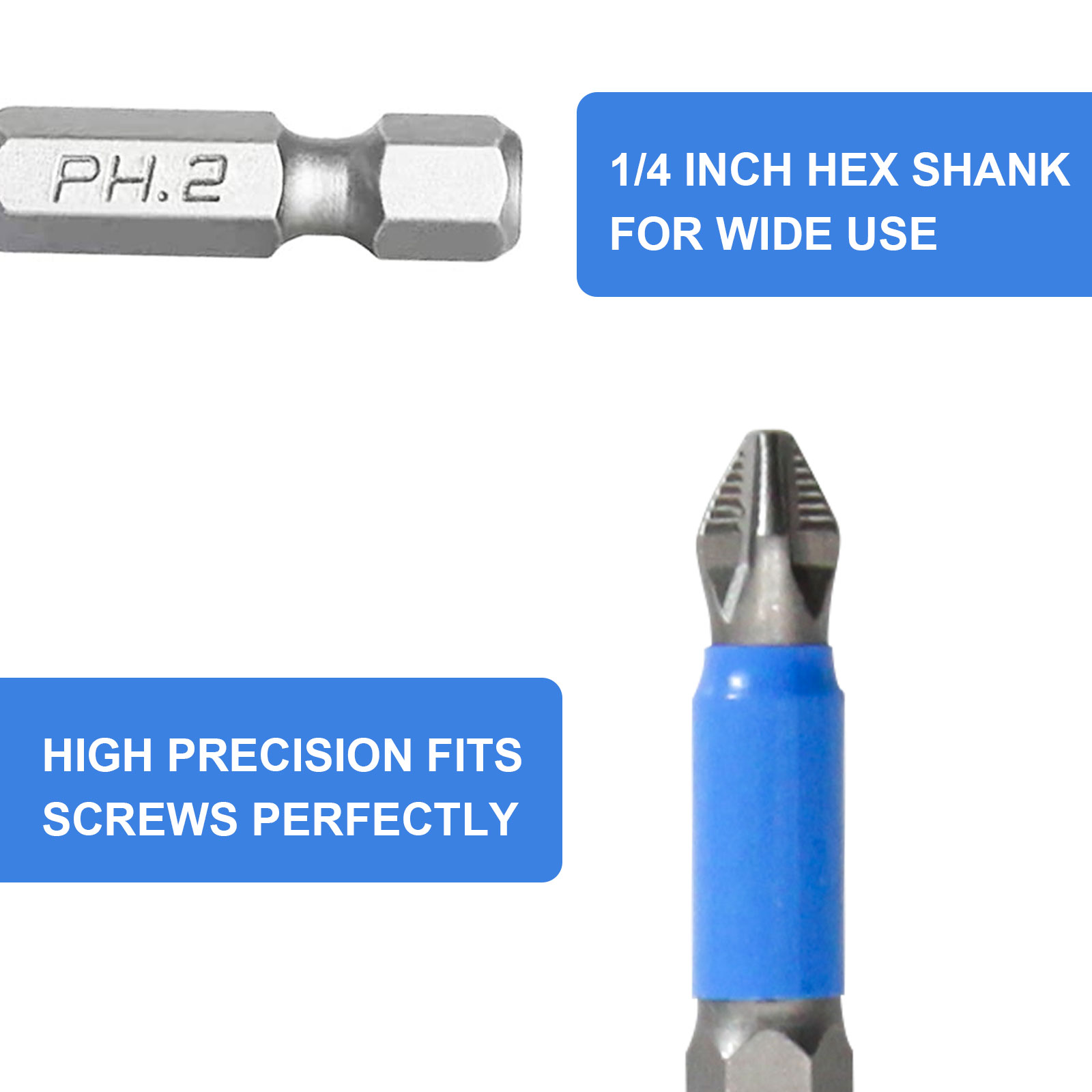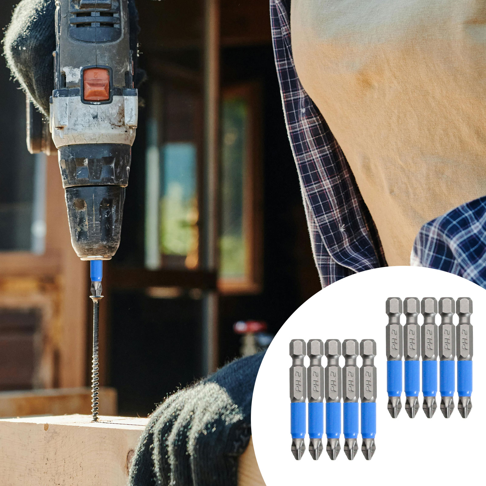 10pcs Alloy Steel Magnetic 1/4 Inch Hex Shank Anti Slip PH2 Cross Head Impact Screwdriver Drill Bits