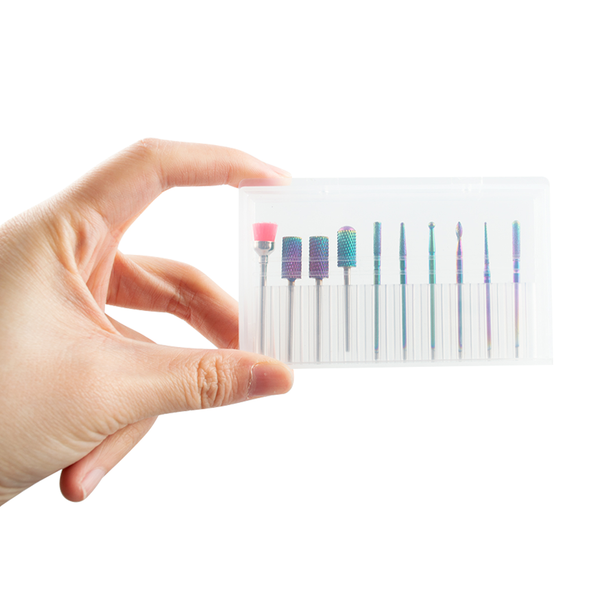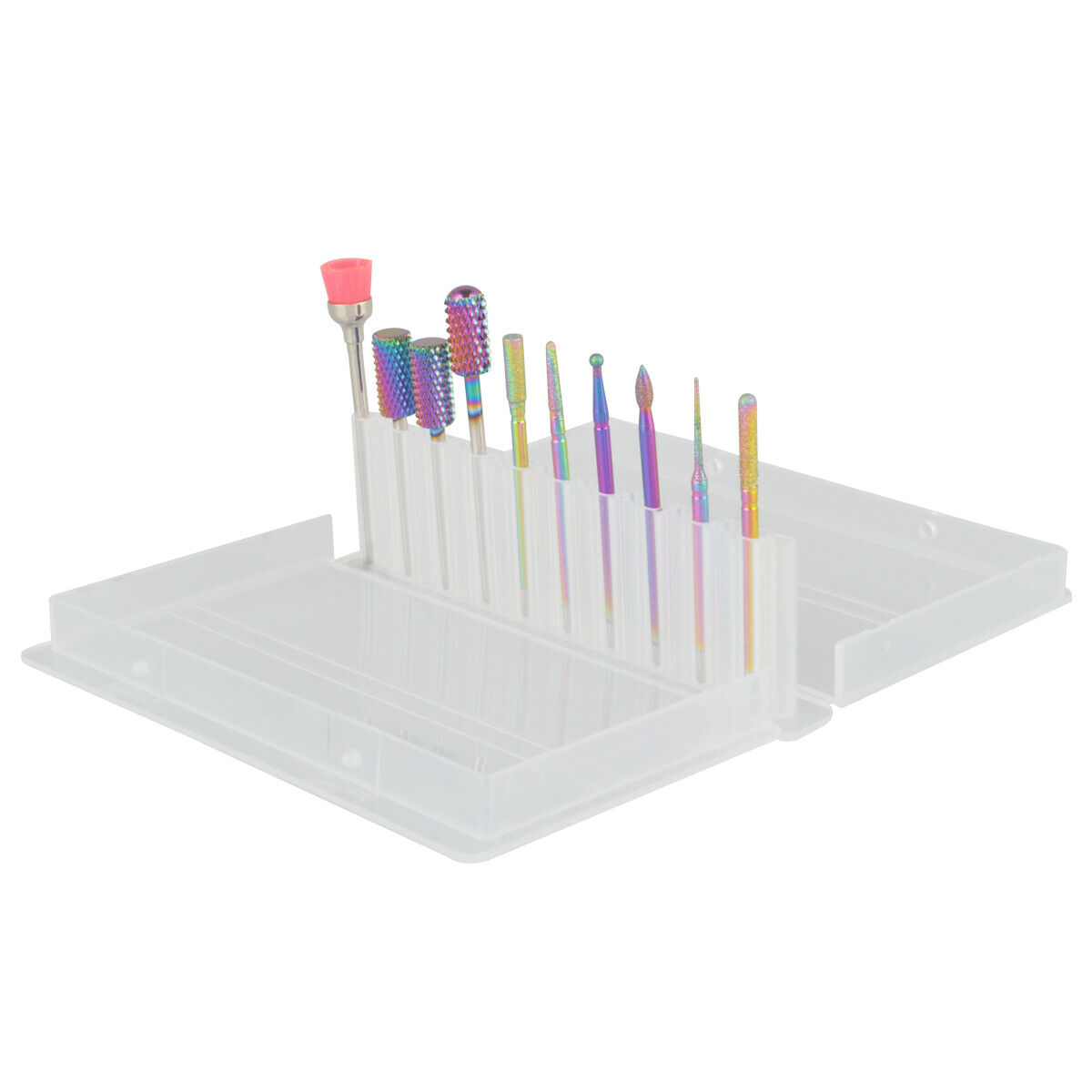 Cute storage case for each nail drill bit, portable and dust proof.