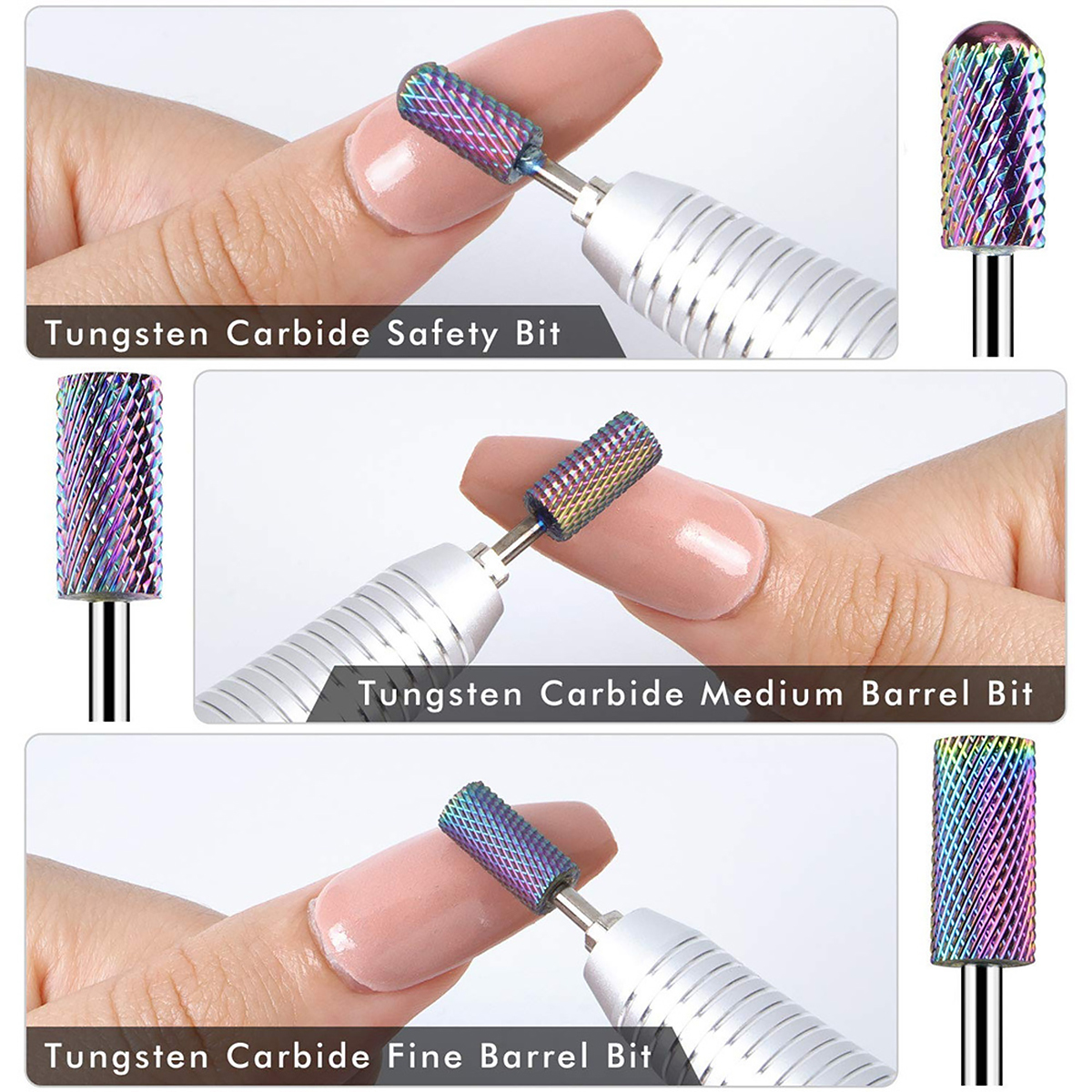 - 3PCS Crude Nail Bits★The nail bits could reshape,polish,smoothen,grind,sharpen,carve and neaten the gel nails or acrylic nails easily and quickly.Great nail tools for any professional manicurist or nail art beginner.