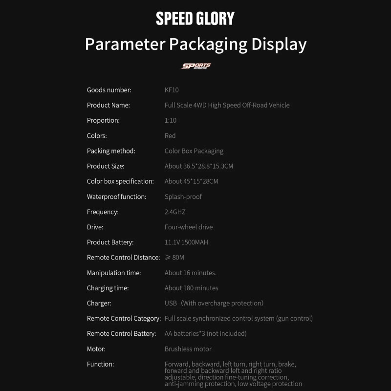 High-speed car x1, remote control x1, manual x1, car body lock x4, screwdriver x1, 11.1V1500mah lithium battery*1, USB charging cable*1