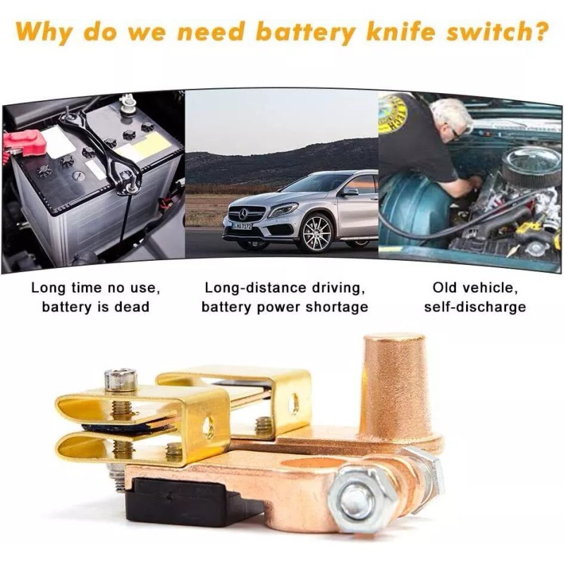 Easy to Use: automotive battery cut off switch with vertical knife blade type design is easy to install and use, just lift the knife and cut off power; The simple operation is suitable for people of most ages to use