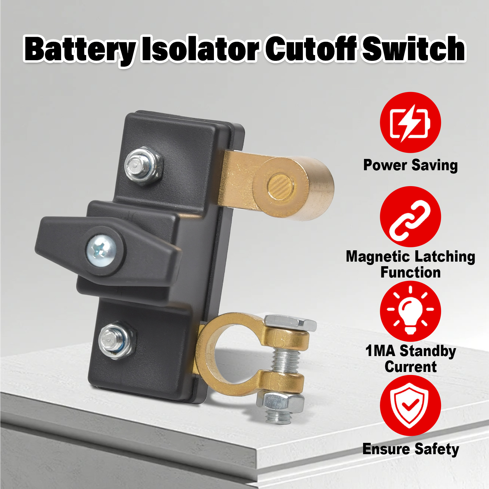 - 【 Power saving 】: This blade type main switch is used for battery isolation and protection of electrical systems, eliminating any power consumption of the battery when the vehicle or vessel is not in use, stopping unnecessary battery depletion, and preventing theft or unauthorized use.