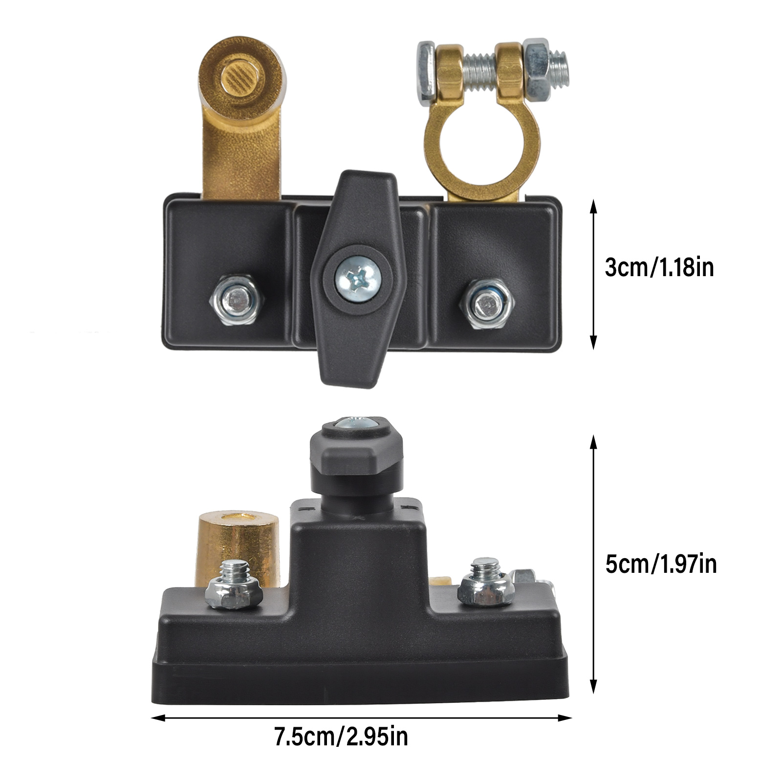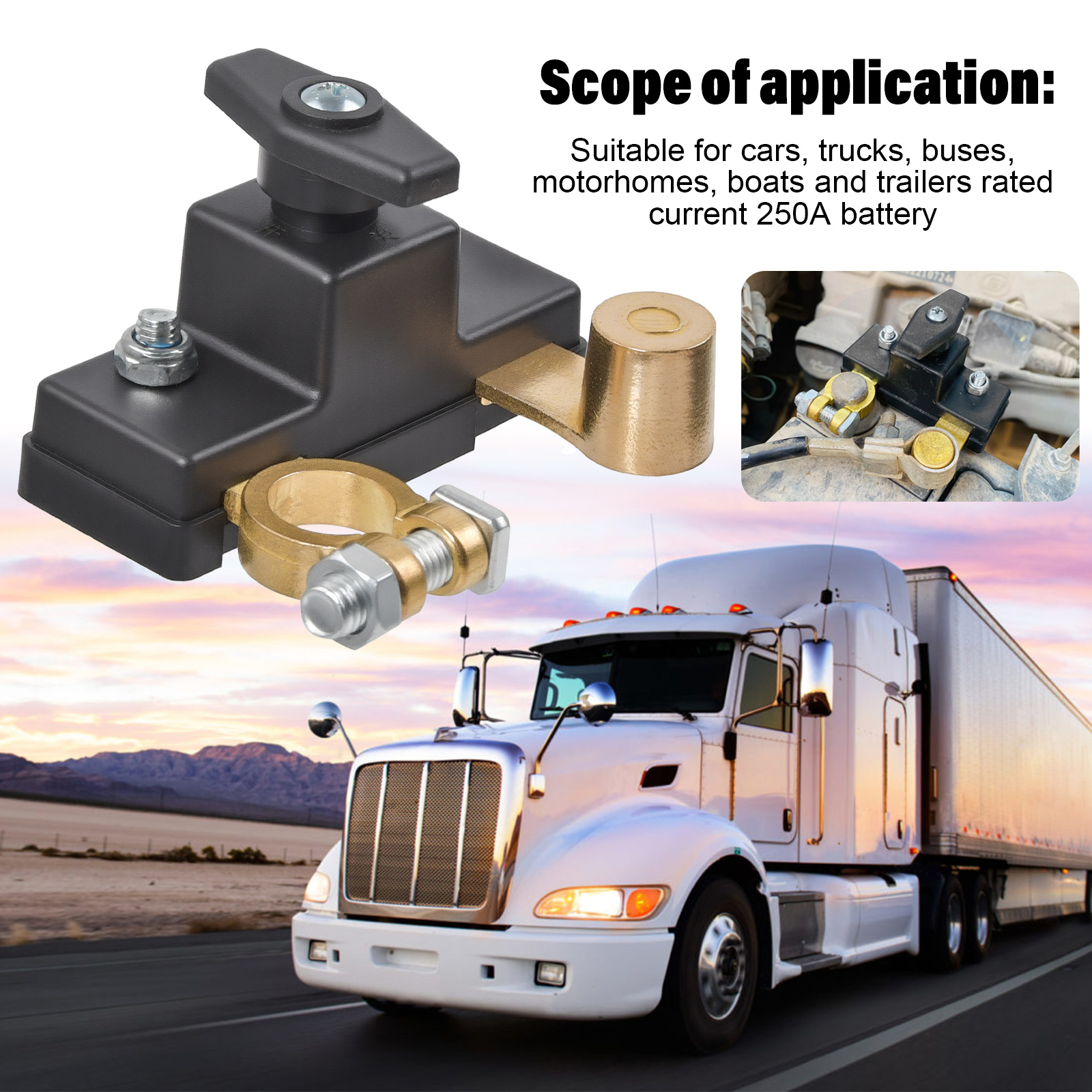 - 【 Compatibility】: This rotary battery disconnect switch is only suitable for the top terminal and negative terminal of the battery. Maximum current: 750A, rated current: 250A. 12v 24V batteries for cars, trucks, buses, RVs, boats, and trailers