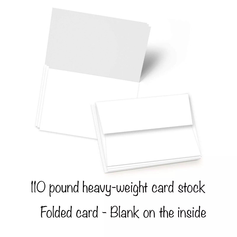 These adorable cards with envelopes come in a set of 12 and are printed on heave weight card stock. The cards are blank on the inside, ready for your own special message. Great for any occasion to add that special touch, create heartwarming notes for birthdays, weddings, anniversary, just because, thank you, thinking of you, holidays, graduation, sympathy and get well cards.