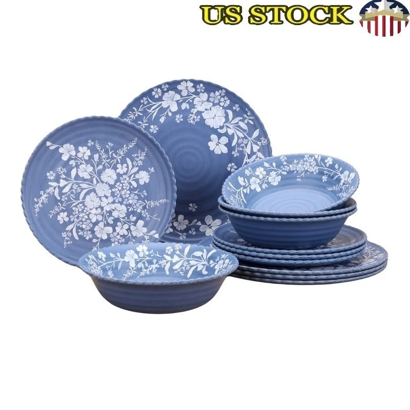 Unbranded 12-Piece Daisy Dinnerware Set Melamine Plates Bowls Ecofriendly Dishwasher Safe
