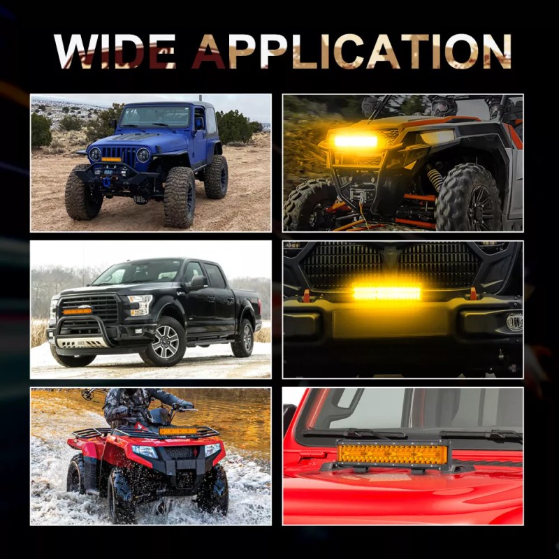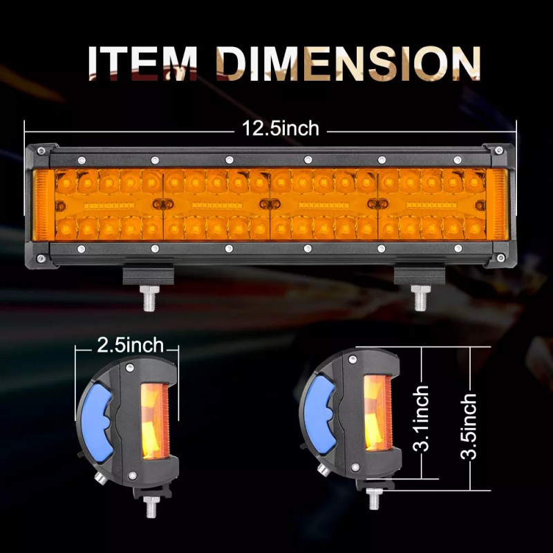12Inch AMBER Dual Row Side Shooter LED Work Light Pods