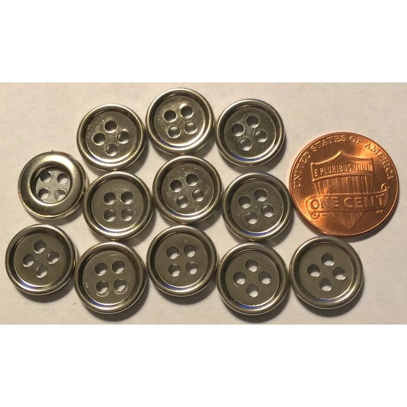 Unbranded 12 Small Shiny Polished Silver Tone Metal Sew-through Buttons 1/2" 12.5mm 10104