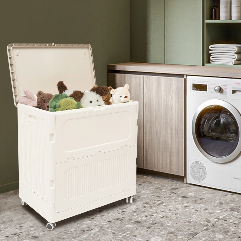 Unbranded 122L Foldable Laundry Hamper Rolling Laundry Basket Cart with Wheels Collapsible