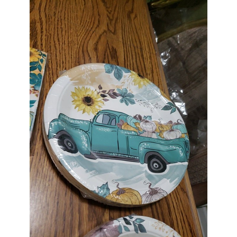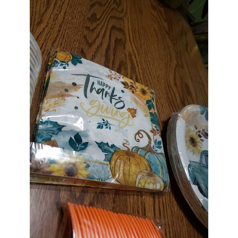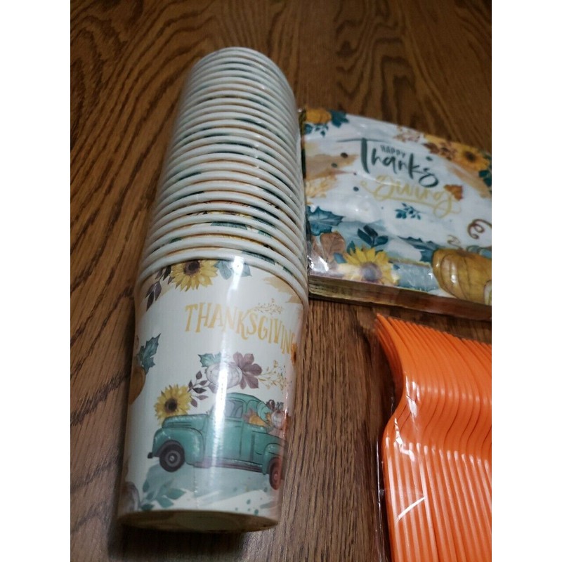Unbranded 125 Pcs Thanksgiving Paper Plates, Napkins, Forks + Cups Tableware Set Serves 25