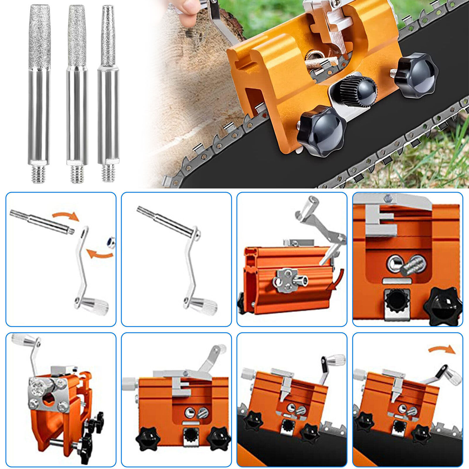 This carbide burr for hand crank chain saw sharpener is only compatible with chainsaw chain sharpening jig. It can be used for 12-20" chain saws.