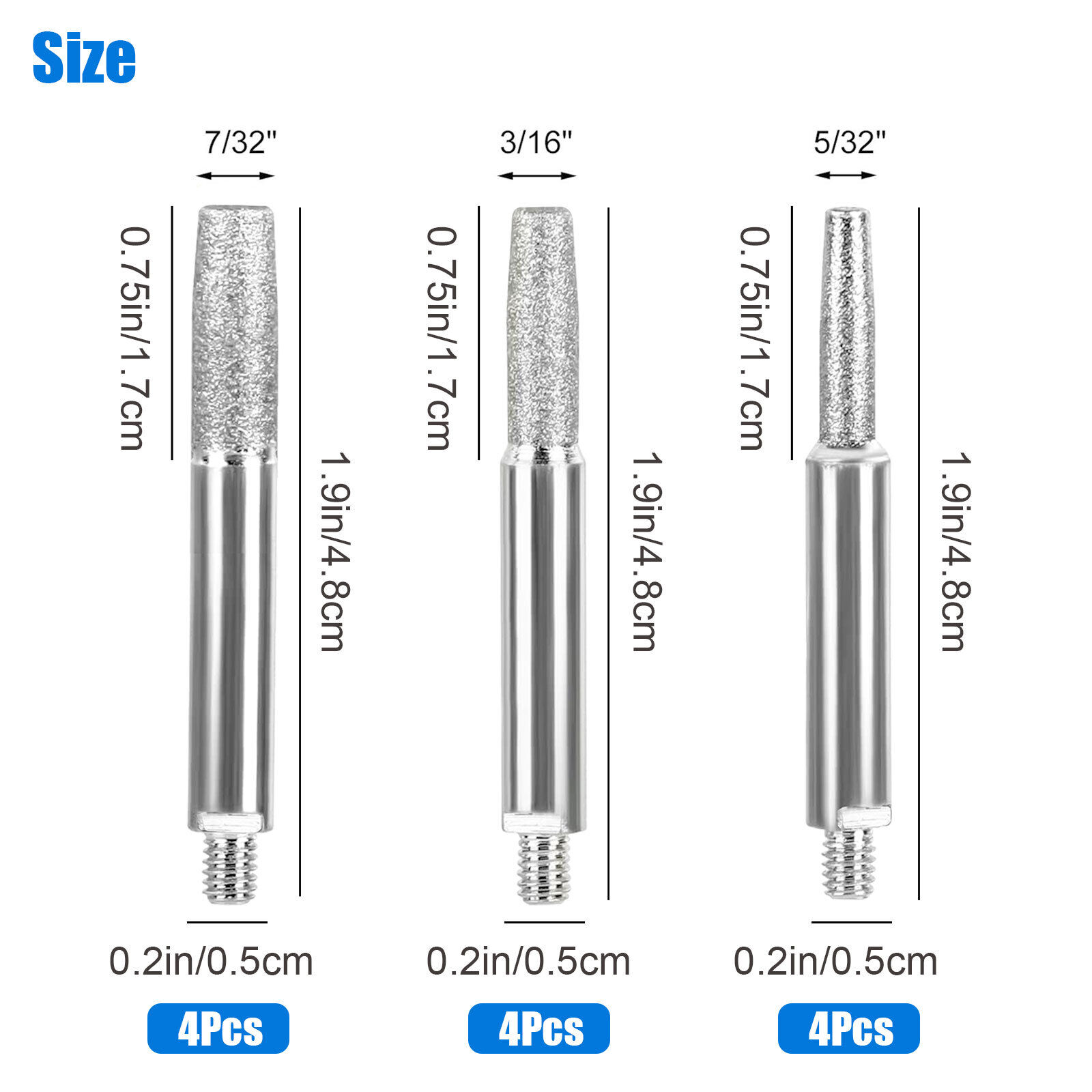 12pcs Chainsaw Sharpener Bits Set Available in 3 different sizes for Chainsaws (5/32"/4.0mm), Small Chainsaws (3/16"/4.8mm), and Large Chainsaws (7/32"/5.5mm), which can meet your daily needs.