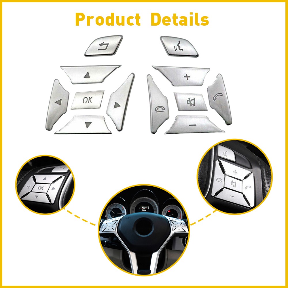 12PCS Chrome Steering Button Wheel Trim Fits for Benz Mercedes E C G Class