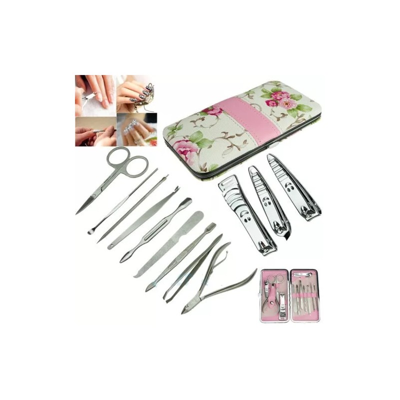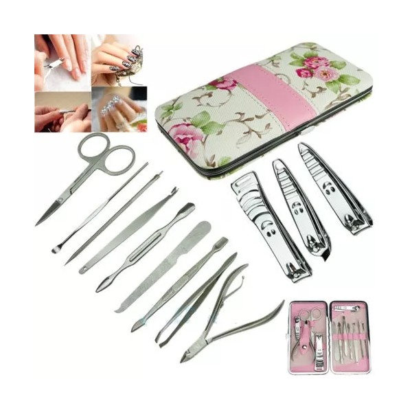 Unbranded 12Pcs Pedicure Manicure Set Nail Cuticle Clippers Cleaner Grooming Kit Tool Case