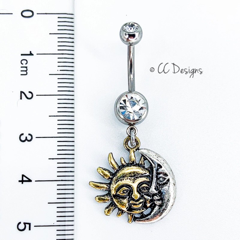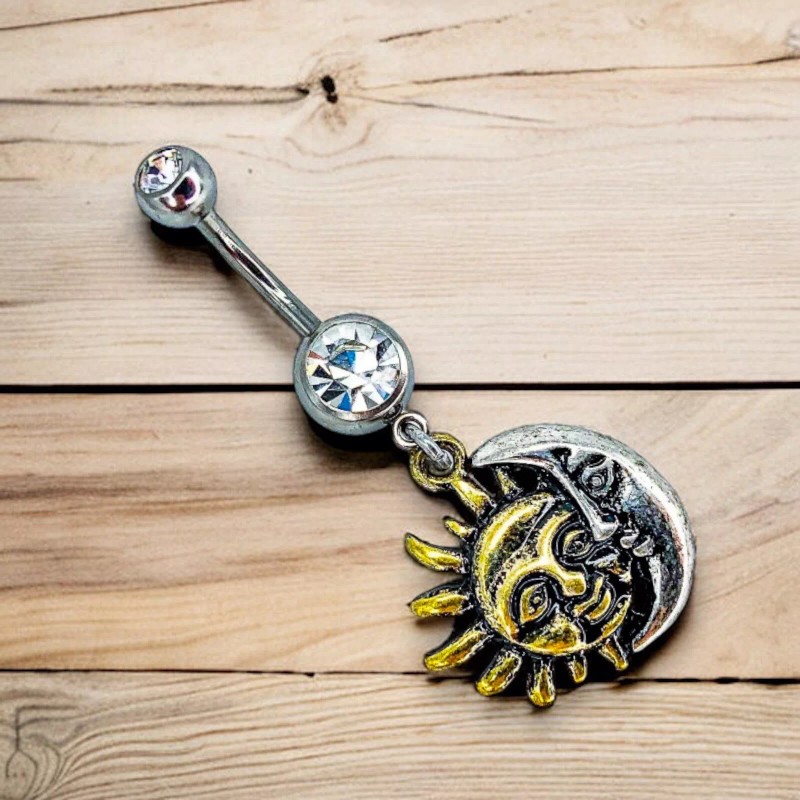 Unbranded 14g white sparkle cz dangle burnished boho sun crescent moon belly ring B544