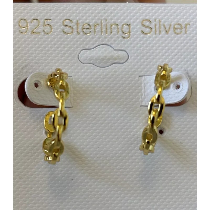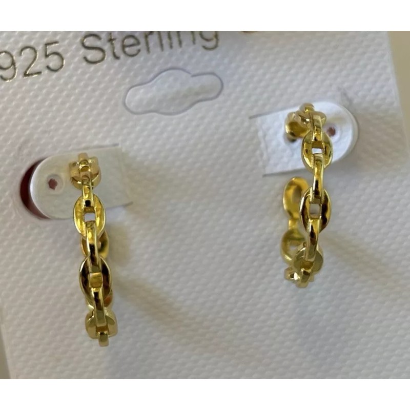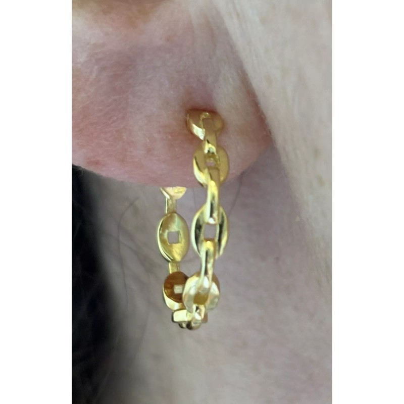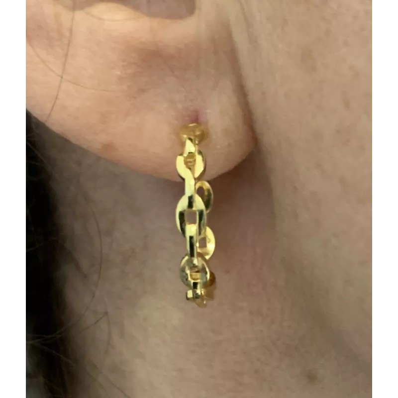 14k yellow gold plated over solid 925 Sterling Silver Anchor Chain Mariner Link Hoop Earrings