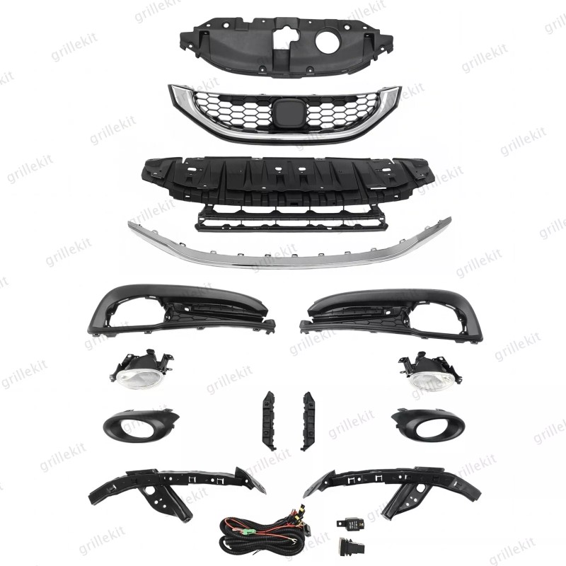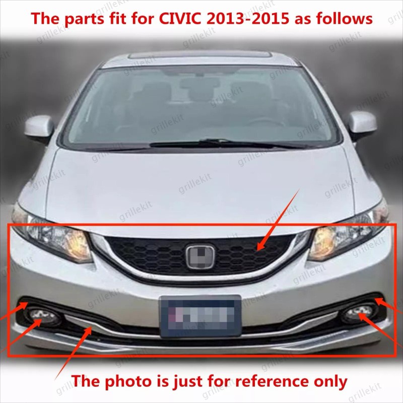 Unbranded 14PC For CIVIC Sedan 2013-2015 Bumper Grille Mesh Fog lamps HeadLamp Bracket Kit