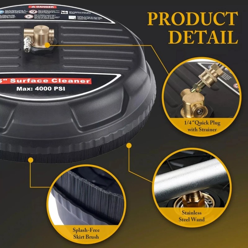 Widely Application: Perfect for cleaning large surfaces such as concrete, driveways, patios, decks, sidewalks and more. It can also be used to clean hard vertical surfaces like brick and stucco.