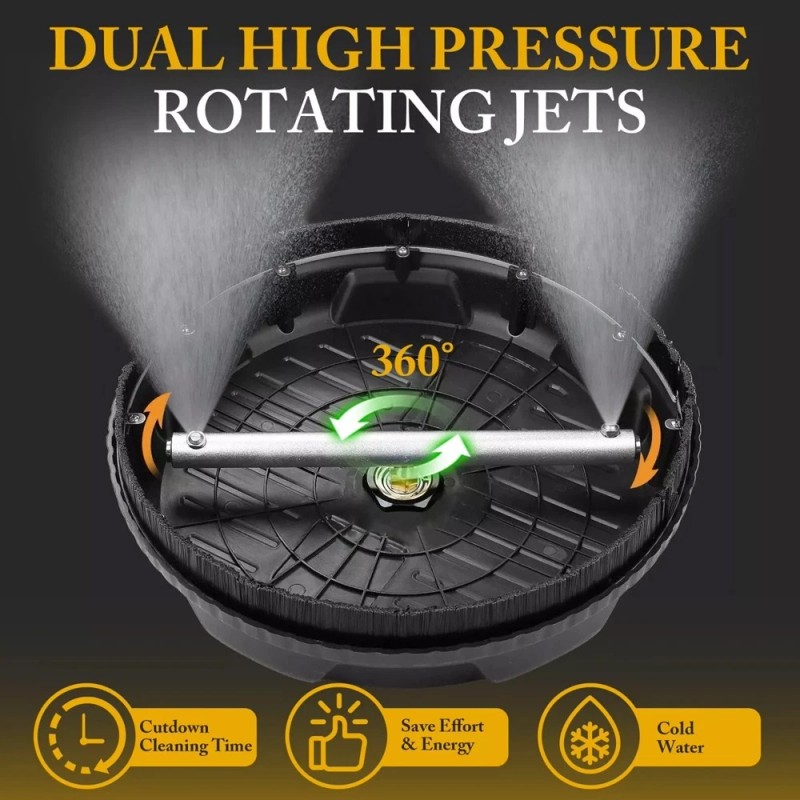 Quick Cleaning: Delivers professional level cleaning over an area 15” wide with two spinning nozzles instead of one, significantly reducing your cleaning time and water usage.