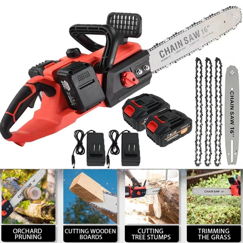 - Accessories Included: 2X Charger, 3X Chains, Cordless Chainsaw, Saw Chains, User Manual