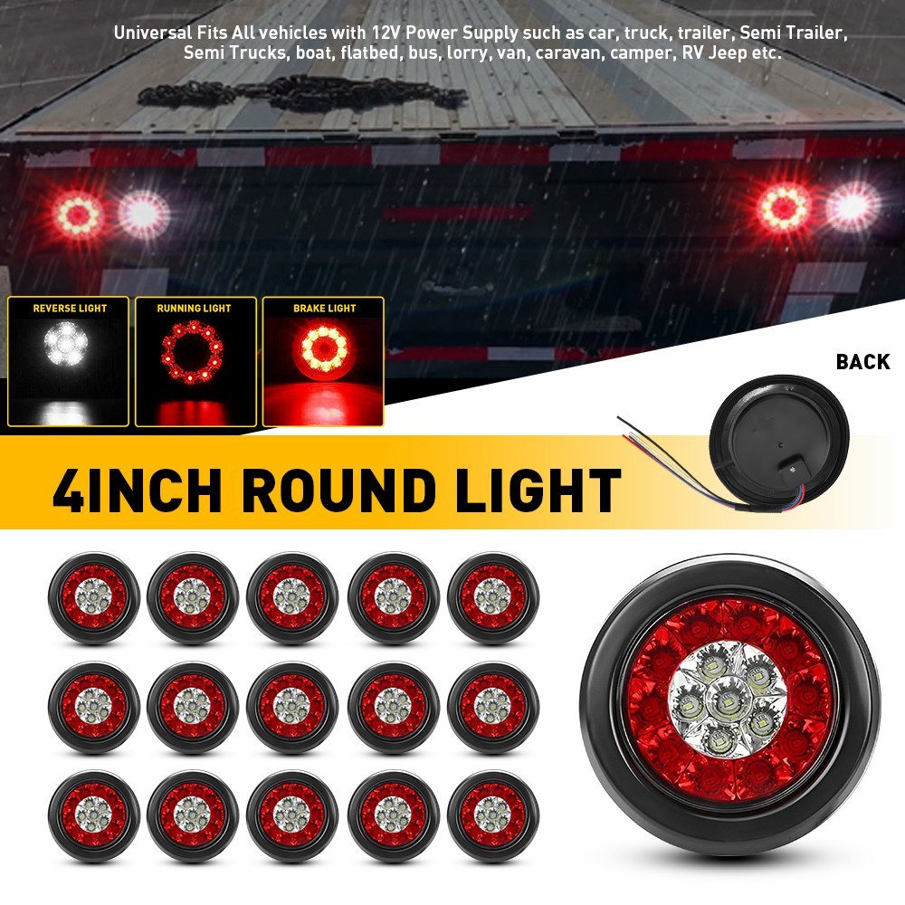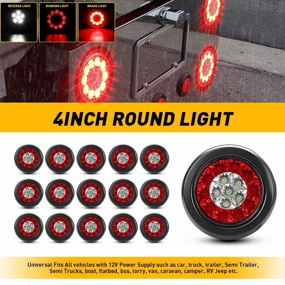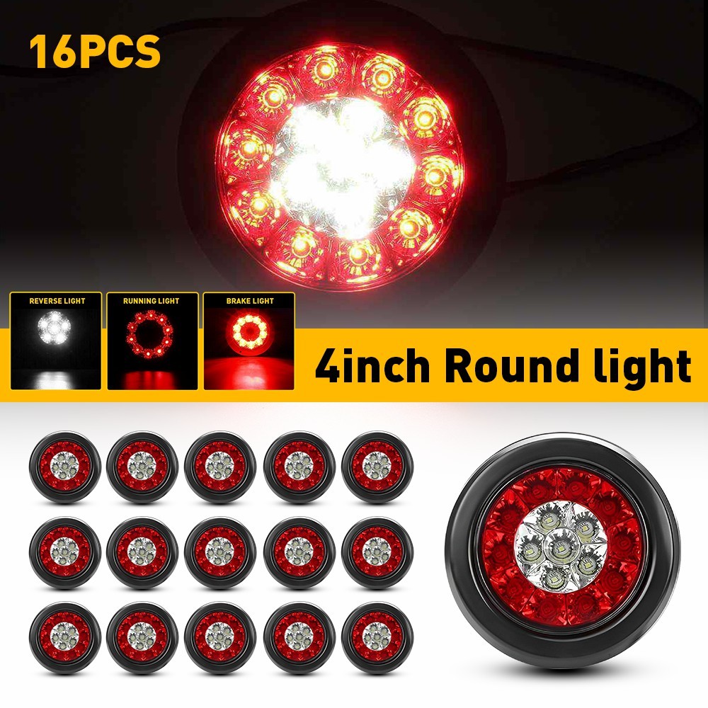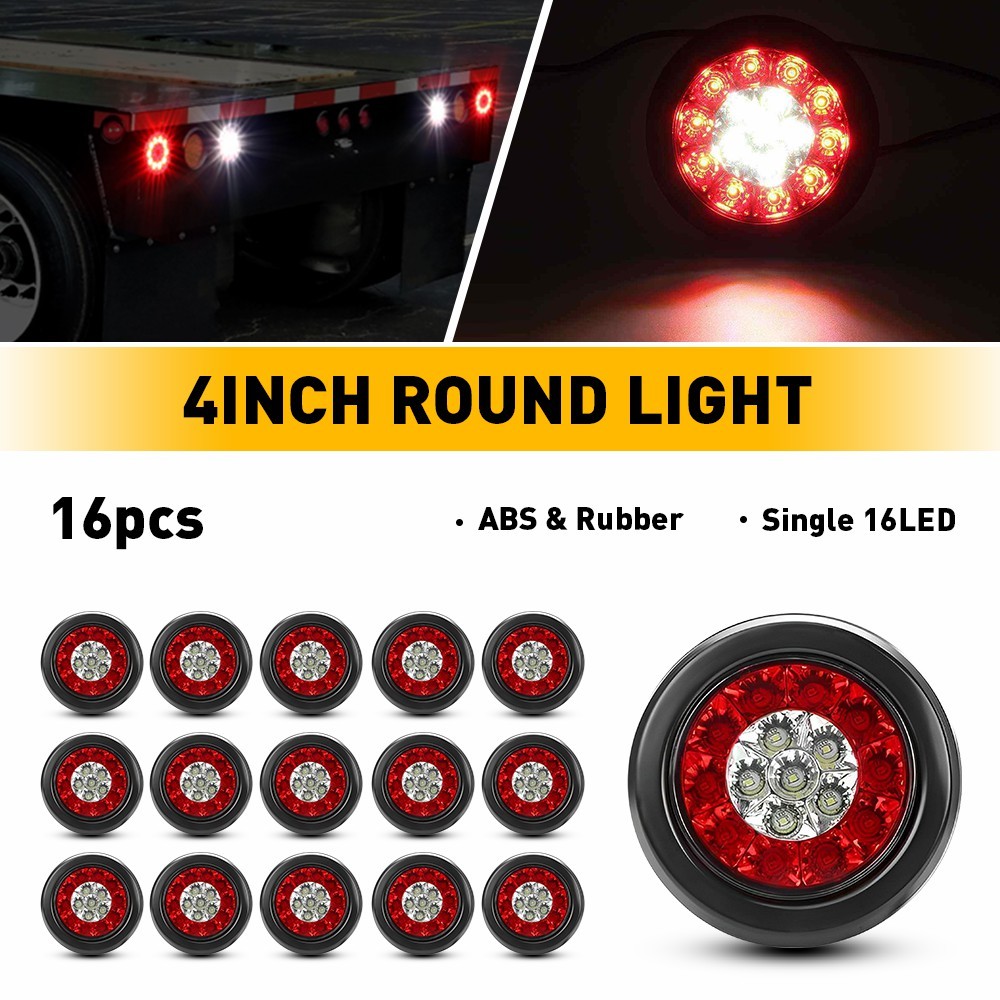 Unbranded 16pcs 4" Round Red/White 16-LED Truck Trailer Brake Stop Turn Signal Tail Lights