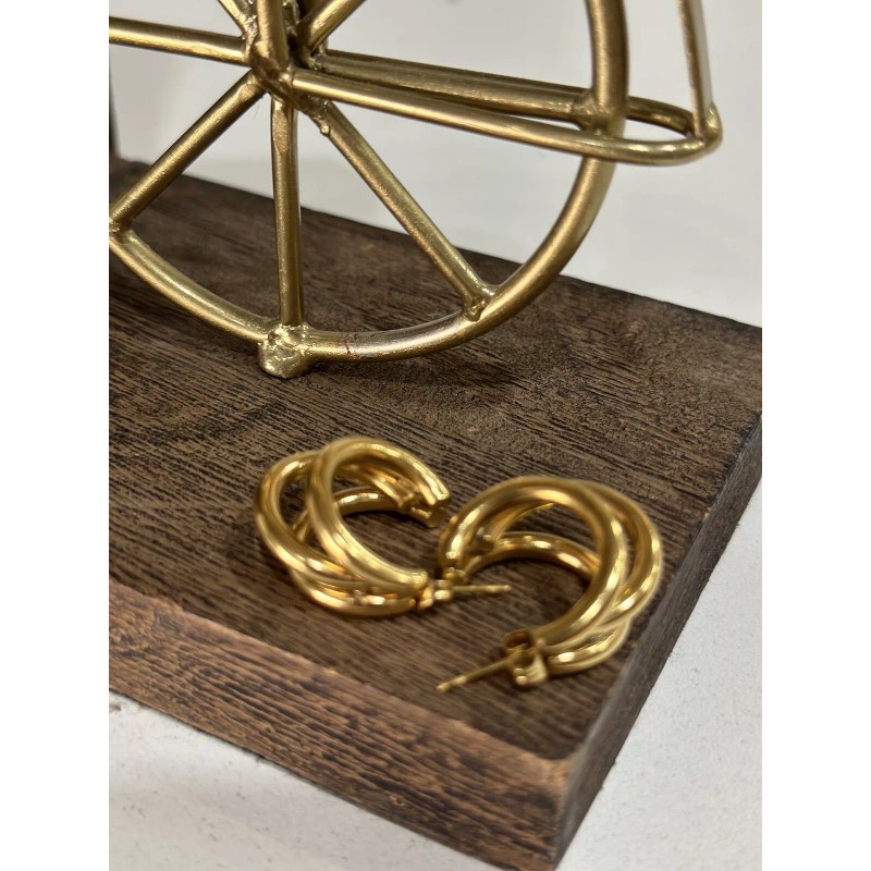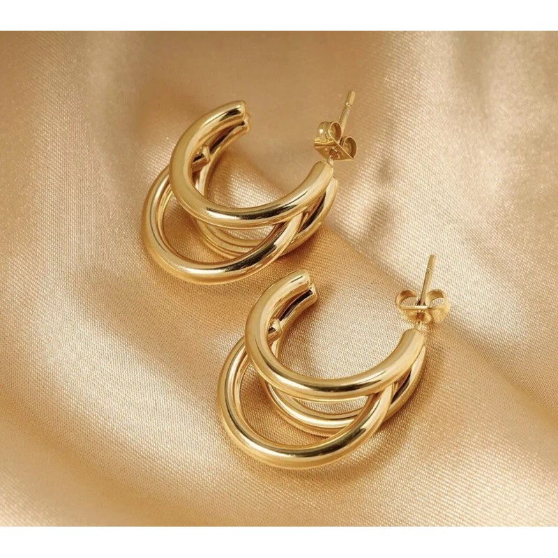 18ct Gold-Plated Triple Layer C-Shape Half Hoop Stud Earrings.