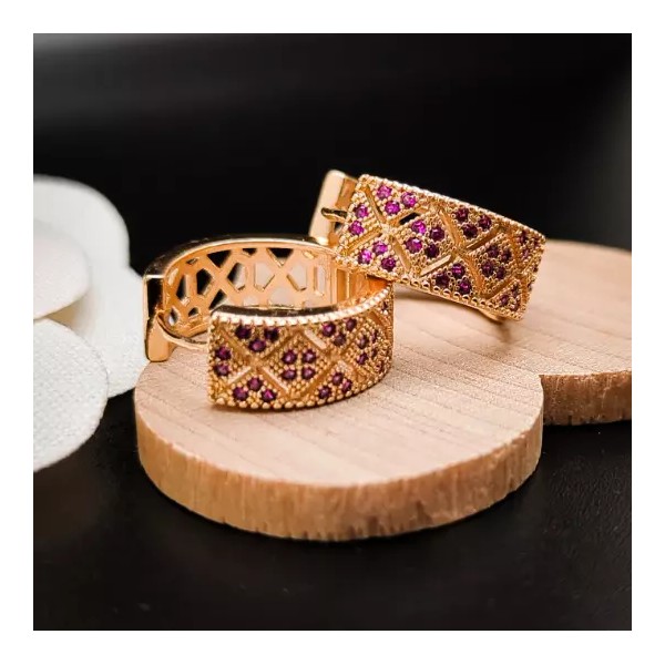 Unbranded 18K Gold Plated Design Hoop Earrings, with Purple Cubic Zirconia