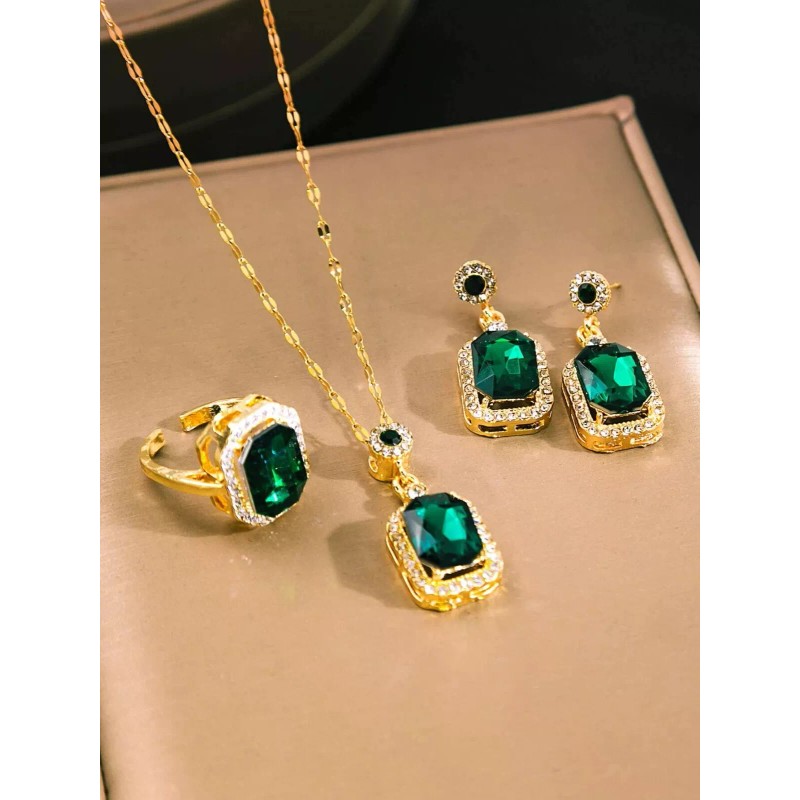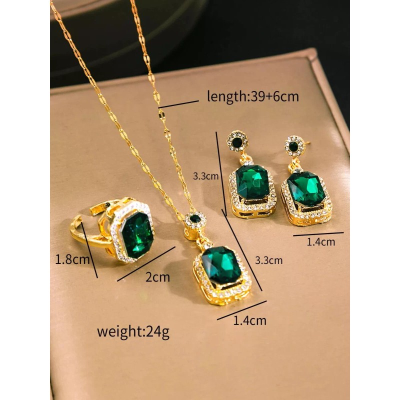 Unbranded 18k Gold Plated Ring, Necklace & Earrings Lab-Created Emerald & Zircon Set