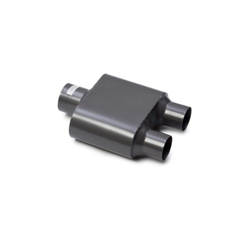 Performance high flow Flowsound 1-chamber muffler with single 3" inlet/dual 2.5" outlet