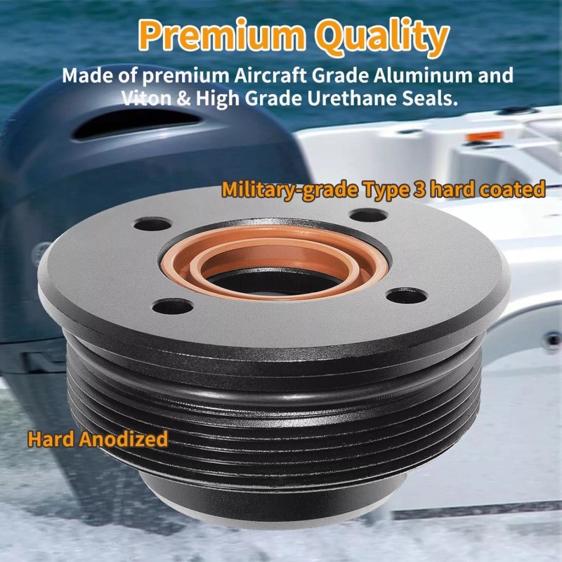 【HIGH QUALITY】Made of premium Aircraft Grade Aluminum and Viton & High Grade Urethane Seals. Hard Anodized for durability and high performance. Military-grade Type 3 hard coating resists impact and corrosion for long-term reliable performance. Features good wear, rust and corrosion resistance, ideal replacement part for your outboards.