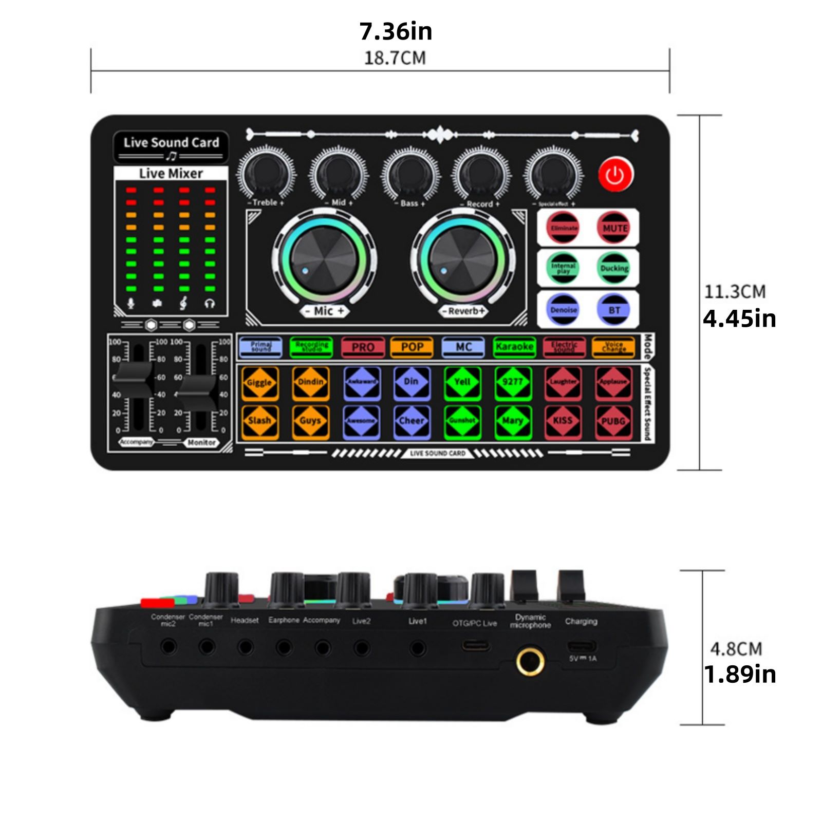 Easy to use operation experience: The F999 sound card design is simple and clear, easy to operate, even first-time users can quickly get started. With simple setup and adjustments, you can enjoy a high-quality recording experience that will make your voice stand out in any situation.
