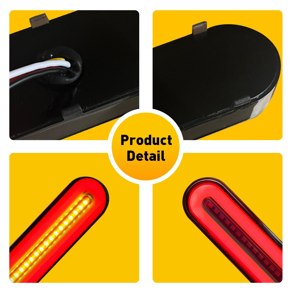 *High brightness: The tail light with high brightness ensures its strong waterproof function and long service life,it is suitable for all outdoor inclement weather. *Waterproof: The tail light is highly silicon sealed with an IP67 waterproof rating, which works even under extreme conditions such as rain and snow. *Easy to install: Equipped with rubber ring and plug,drilling and hardwiring are not required. *Connection Black Wire: Negative Yellow Wire: Turn light 锛團lowing) Red Wire: DRL Light (With startup effect???/p> Blue Wire: Brake Light锛圵ith startup flashing effect???/p> *Functions Brake Light, Daytime Running Light, Side Marker Light, Side Repeater Light, Tail Light, Third Brake Light, Turn Signal Light. *Wide application: Fits for heavy duty trucks like Peterbilt, freightliner, international ,Kenworth, mack, and so on