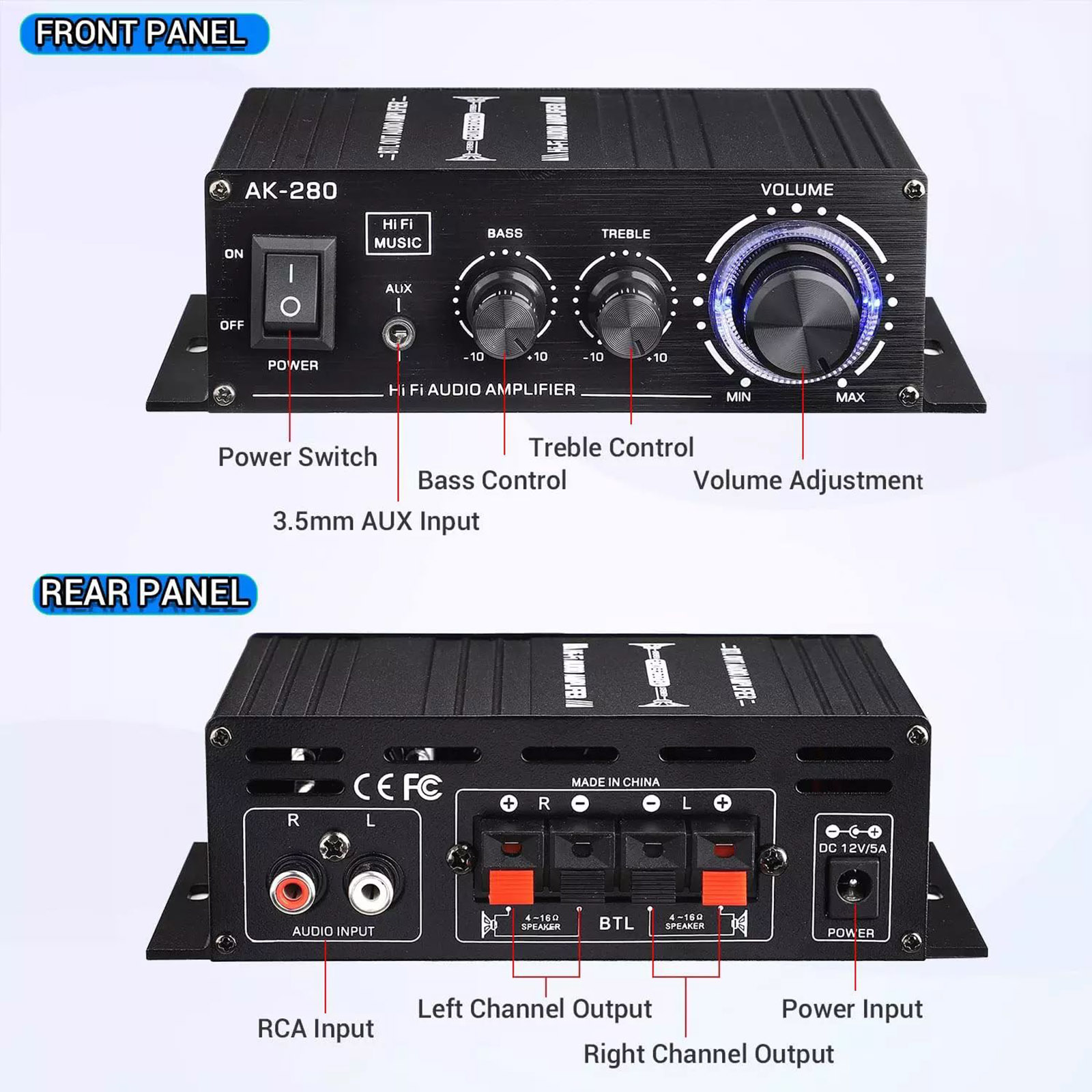 2.0 Channel AK280 Mini HIFI Stereo Digital Amplifier Fit For Home/Car Speaker