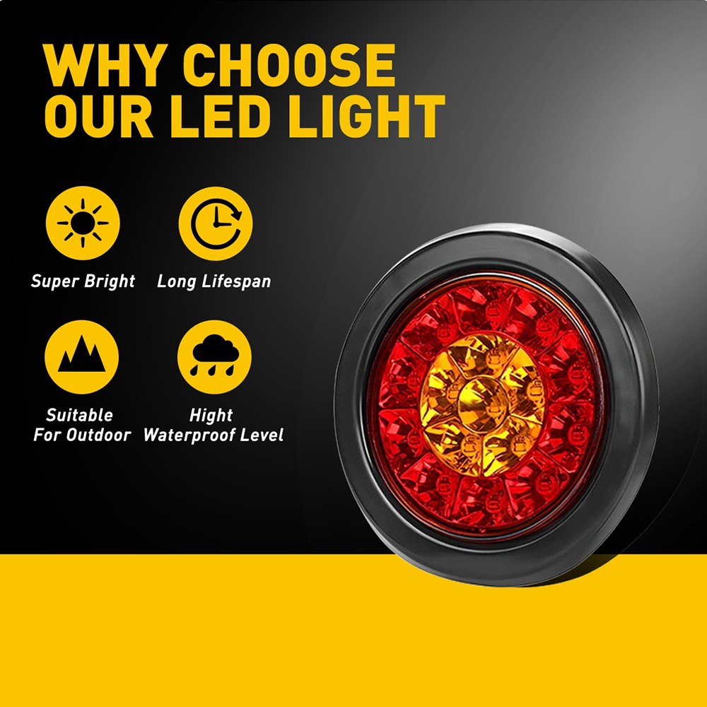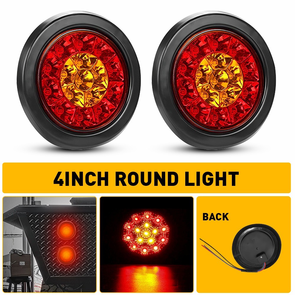 2* 16-LED Round 4" Truck Trailer RV Brake Stop Signal Turn Tail Lights Red Amber