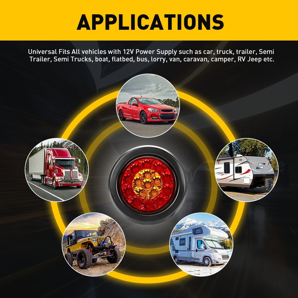 Unbranded 2* 16-LED Round 4" Truck Trailer RV Brake Stop Signal Turn Tail Lights Red Amber