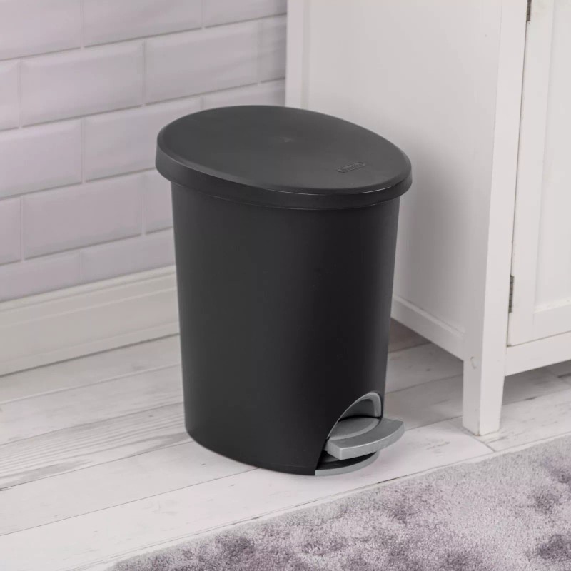 - The slim, oval design makes this 2.6 Gallon wastebasket ideal for use in narrow spaces