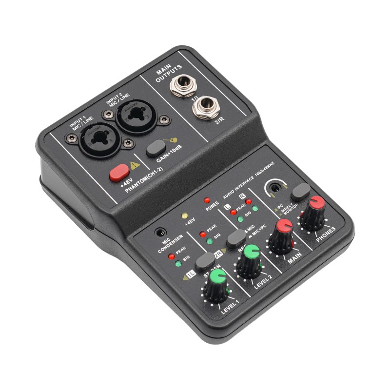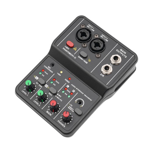 Unbranded 2-Channel USB Audio Mixer with Phantom Power and Real-Time Monitoring