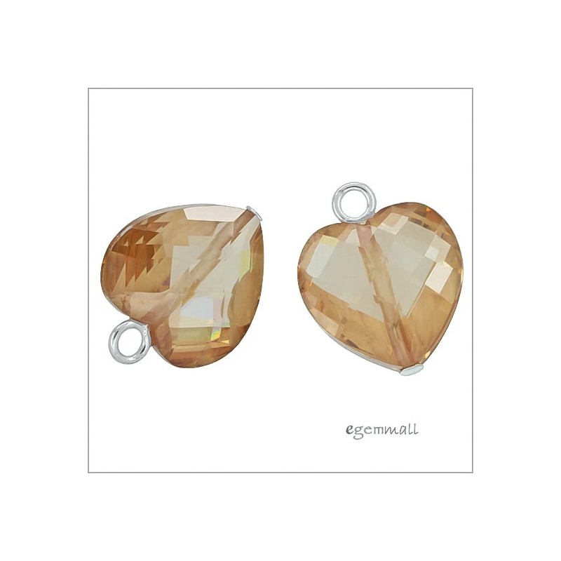 2 Cubic Zirconia Sterling Silver Heart Charm Beads 12mm Champagne #97115 |