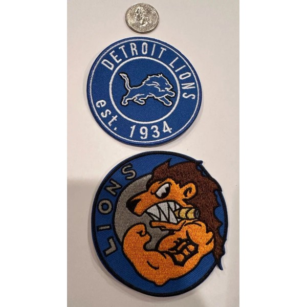 (2)- Brand New Detroit Lions / Tigers Vintage embroidered iron -on Patches 3.25”x 3.25” Beautiful.