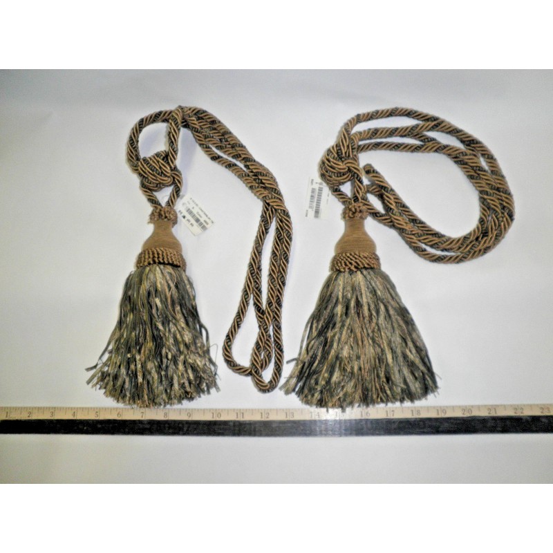 This is for 2 brand new Elegant Ribbon Tassel TIE-BACKS in the colors GREENS / BLACK. Tassel measures 7 3/4" Span is 39 1/4" Manufactured in Spain by Juan Santamaria e Hijos. Please email with any questions. |