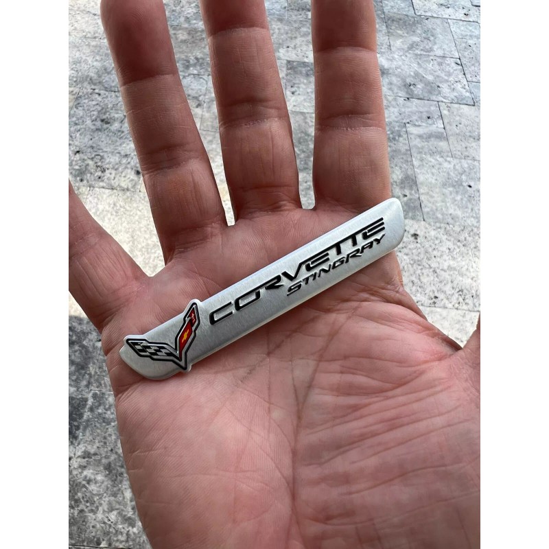Unbranded 2 Fender Console Badge Engine Cover Aluminum Emblems Corvette Stingray C7 Silver