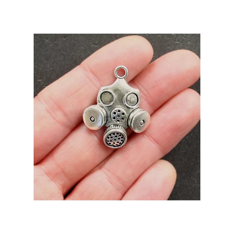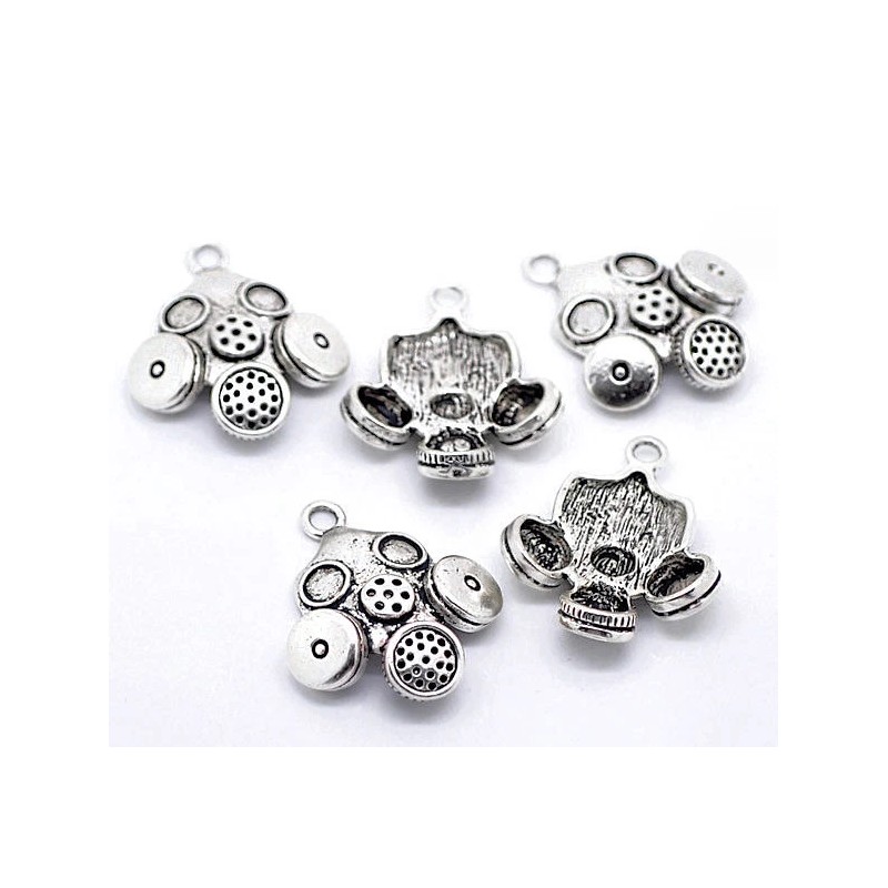 Unbranded 2 Gas Mask Charms Antique Silver Tone - SC1526