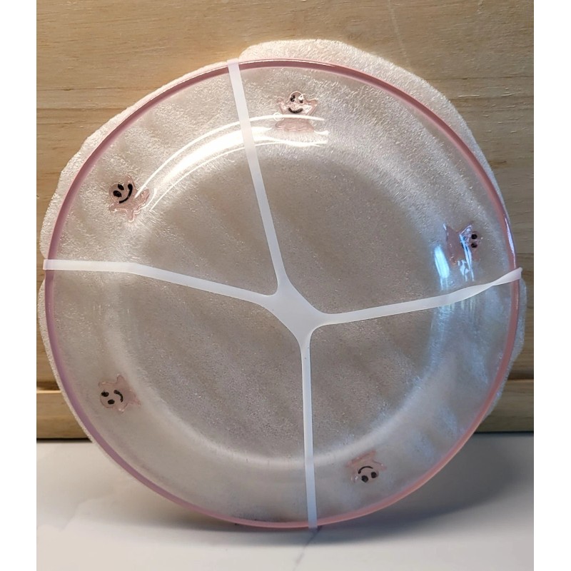 Unbranded 2 Glass Plates Pink Ghost Icons 8" diameter (See matching glass, pitcher, bowl )